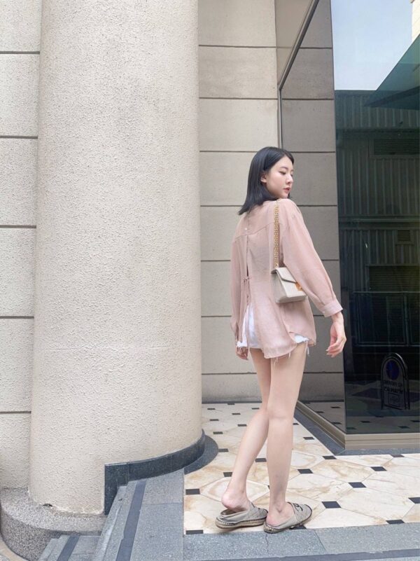 เปลี่ยนผ้าใหม่ ใส่สบาย ฟิวแบบชีฟองปั้มลายในตัวผ้า ผ้าจะลื่นๆ ทิ้งตัว ใส่เที่ยว ใส่คลุม ได้มากแม่ ไม่ติดอะไรเลย ดีเทล กระดุมหลัง พร้อม แต่งผูก ตัลล๊าคคคคค